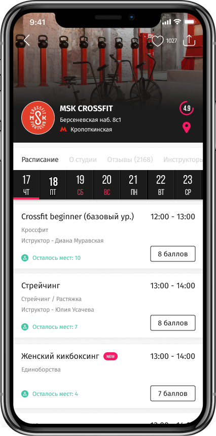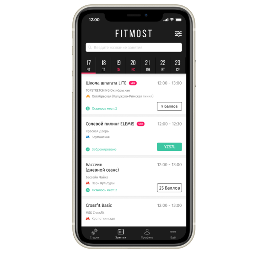 Когда вы покупаете абонемент, вам на счет зачисляются баллы. За эти баллы вы сможете покупать любые занятия. Например, занятия по йоге и фитнесу обойдутся примерно в 8 баллов, а поход на массаж или в баню — в 16.